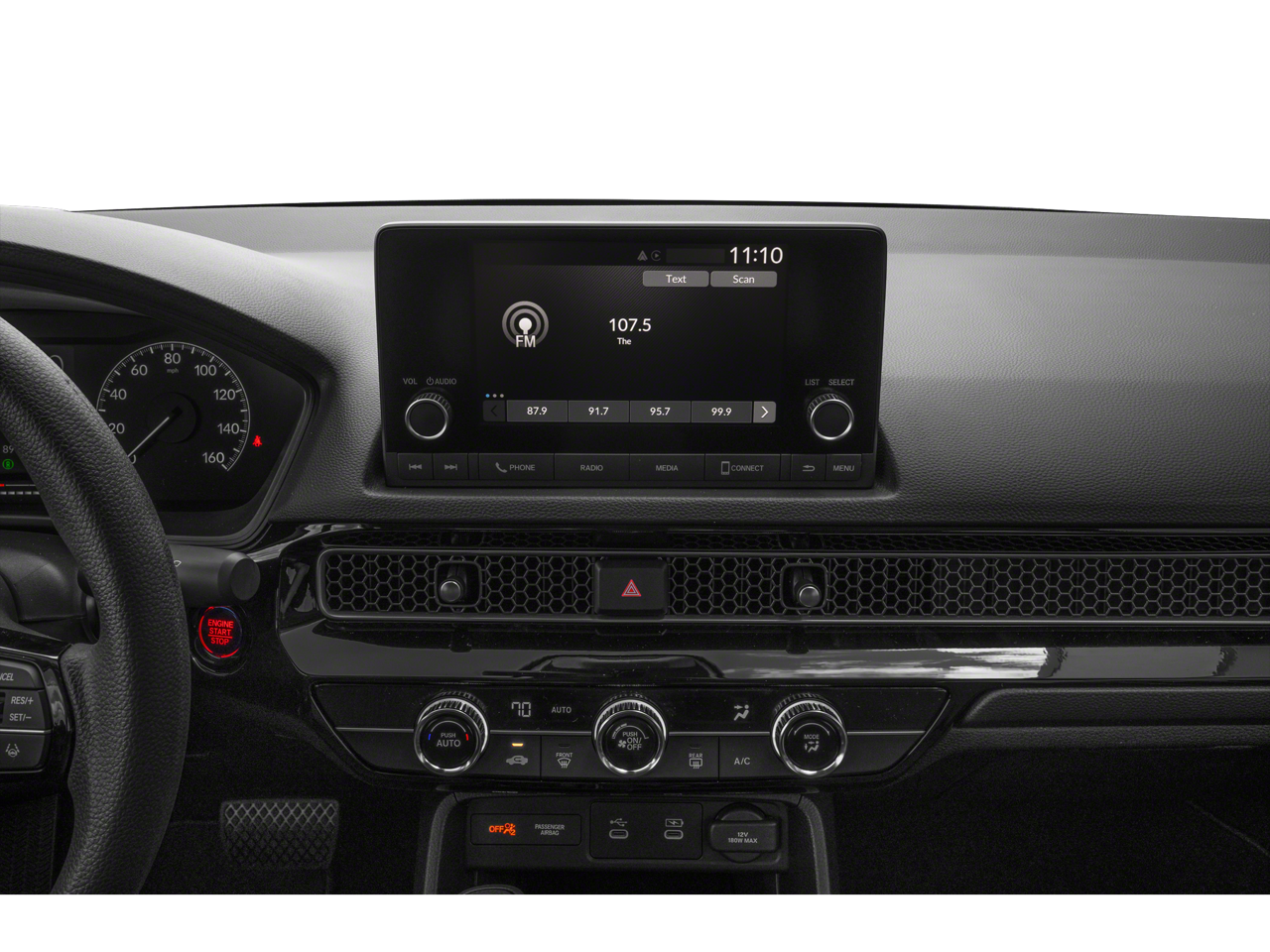 - Radio: 160-Watt Audio System -inc: 4 speakers, 7" color touchscreen, Bluetooth® HandsFreeLink and streaming audio, HondaLink, Speed-Sensitive Volume Compensation (SVC), Radio Data System (RDS), Apple CarPlay and Android Auto compatibility and USB-C 3.0A smartphone/audio interface/charging port in front seats