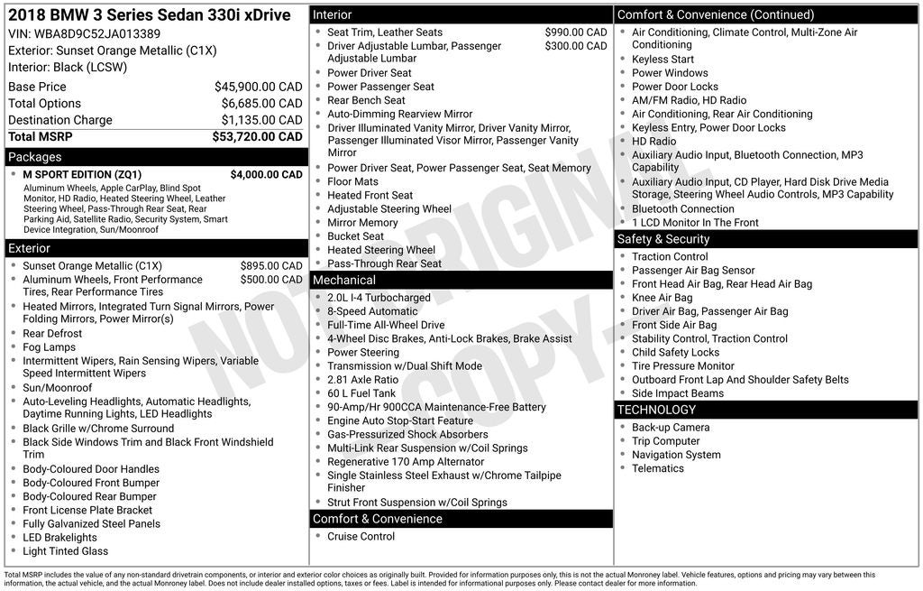 2018 BMW 3 Series 330i xDrive AWD 2.0L 4-Cylinder DOHC 16V Turbocharged 8-Speed Automatic 4D Sedan Burnt Orange