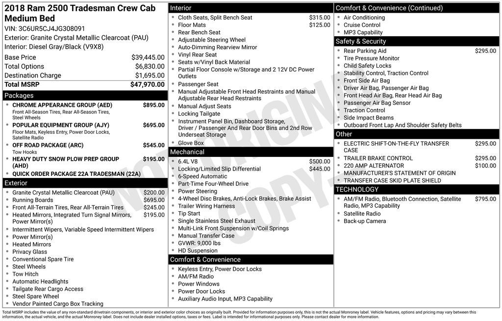 2018 Ram 2500 Tradesman 4WD 6.4L Heavy Duty V8 HEMI w/MDS 6-Speed Automatic 4D Crew Cab Granite Crystal Metallic Clearcoat