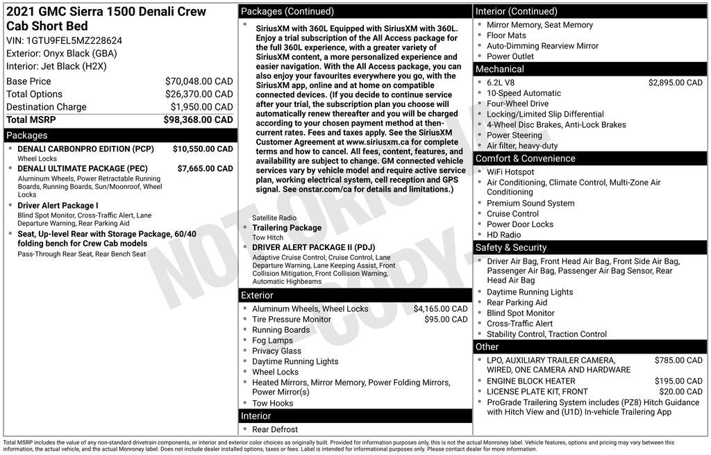 2021 GMC Sierra 1500 Denali 4WD EcoTec3 6.2L V8 10-Speed Automatic 4D Crew Cab Onyx Black