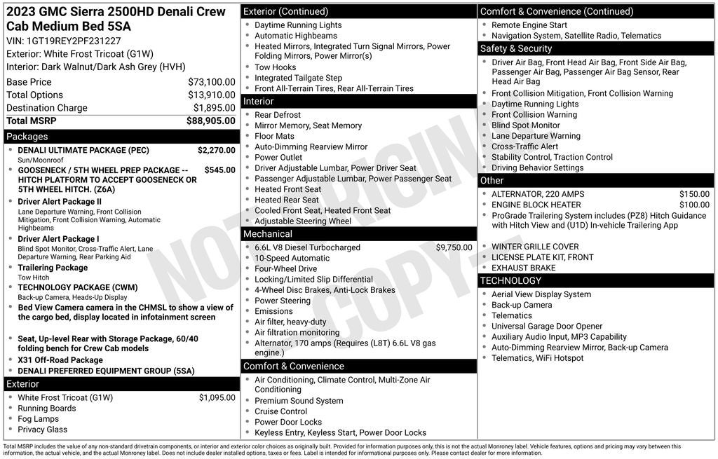 2023 GMC Sierra 2500HD Denali 4WD Duramax 6.6L V8 Turbodiesel 10-Speed Automatic 4D Crew Cab White Frost